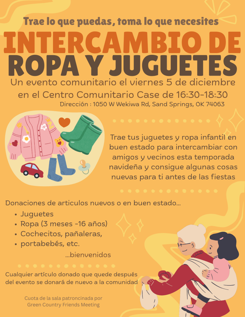 The Green Country Friends Meeting will be sponsoring the cost of the room for a community event in Sand Springs, OK.